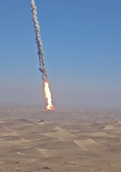 朱雀三号一级坠落在着陆场上